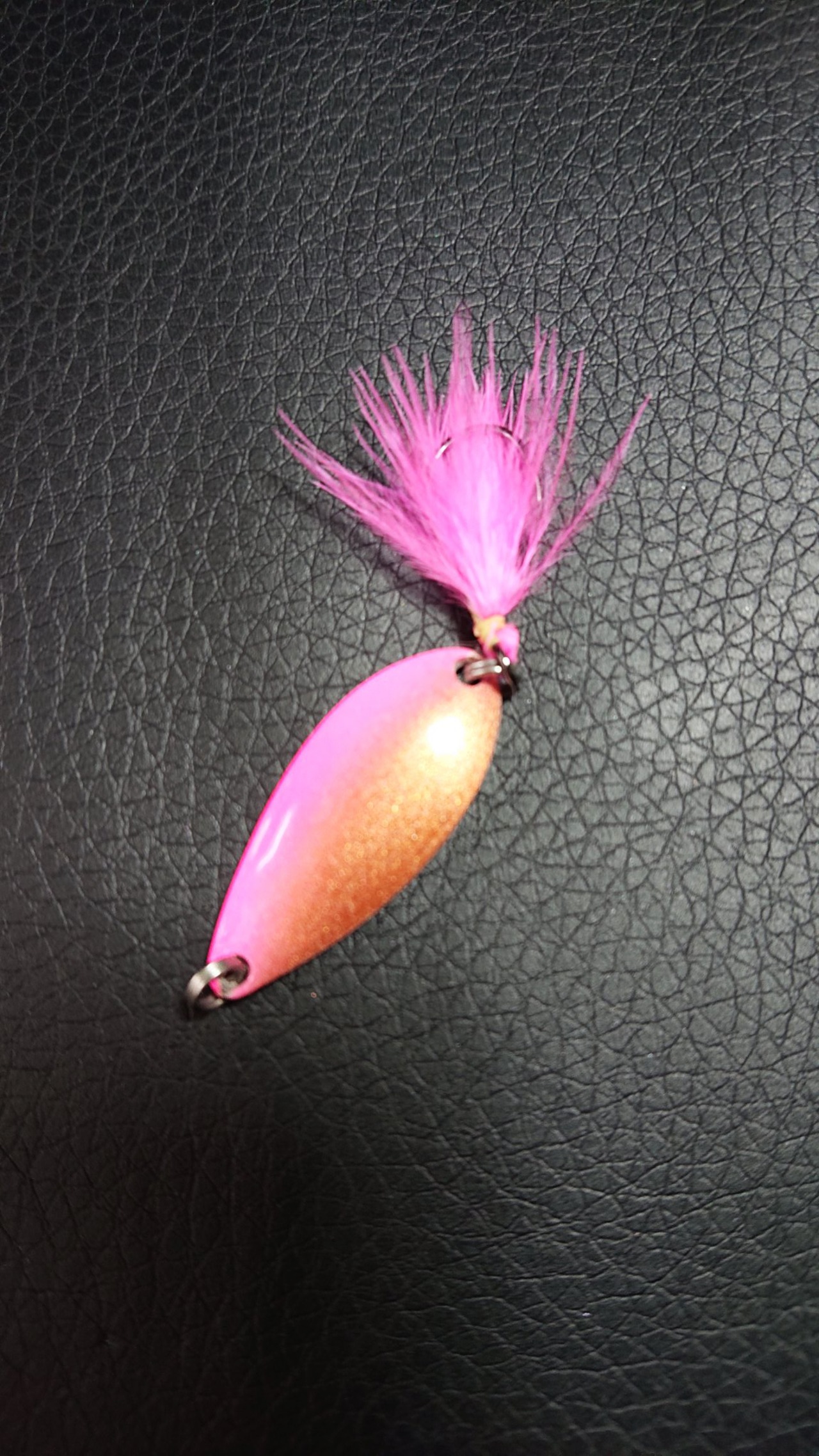 スプーン04・約3g・フェザーフック付き(両面塗装・コパーピンク)
