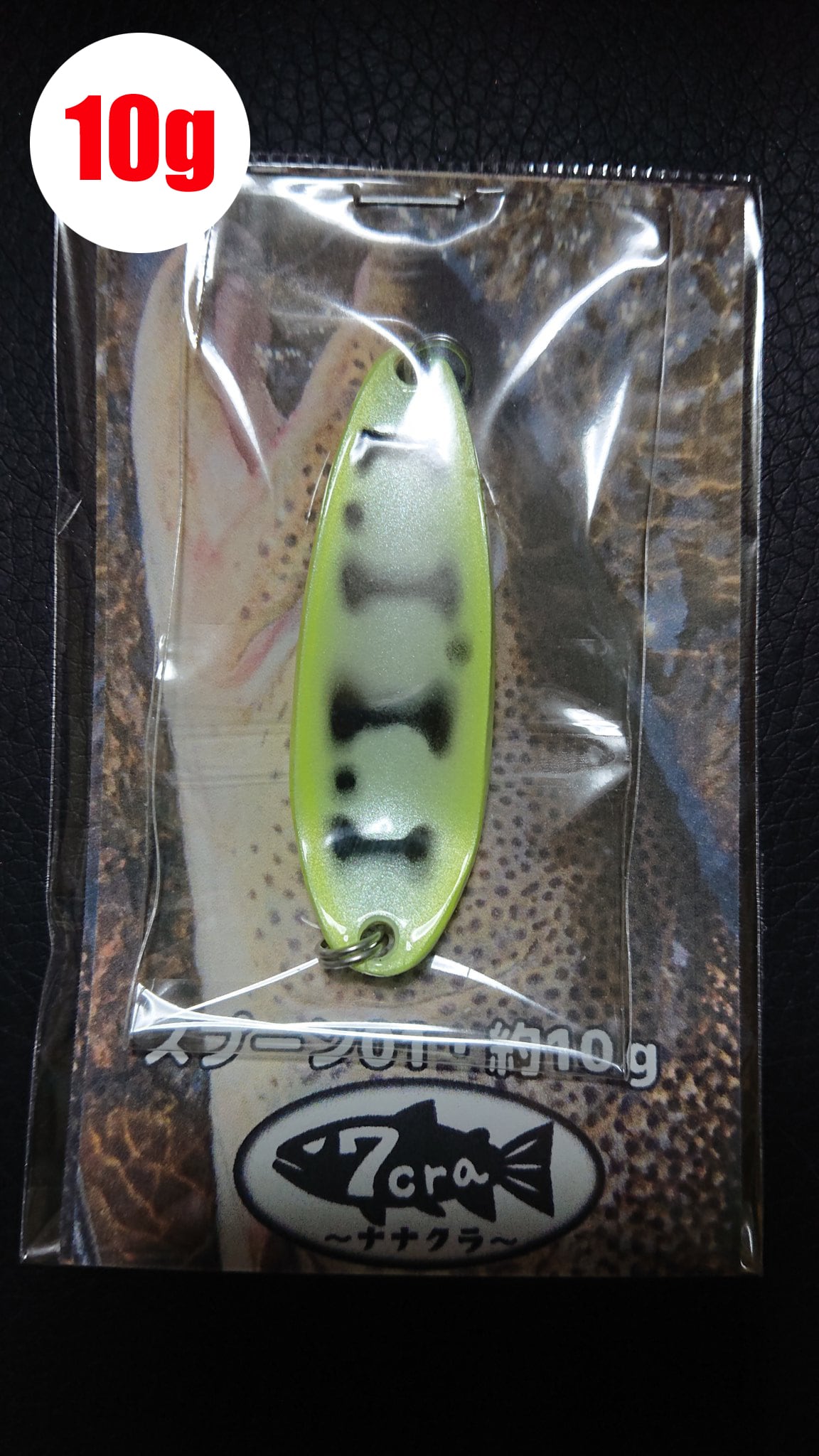 7cra(ナナクラ)ルアーの第1作目、イトウ用として開発したスプーン01のライトウェイトモデルです。カラーは両面イエローフクドジョウです。フックレス仕様で、ウェイトは約10gです。イトウ用に最適化されたフォールとスイミング。ライトウェイト化によりフォールを遅くし「食いやすい」動きに仕上がっております。テスト時には「食いが渋い状況」での高い効果が確認でき、103cmと101cmのイトウをランディング。当ショップのガード付きフェザーシングルフックを装着すると、フェザーの柔らかい動きがスプーンに生命感を与え、ジョイントミノーのように動きます。また、ガードが付いているため、ボトム操作時の根掛りを激減させます。スプーン01は100匹以上のイトウ達(うちメーターオーバー3匹)を相手にテストし、開発されました。スプリットリングは信頼のフィールドハンター製3番。