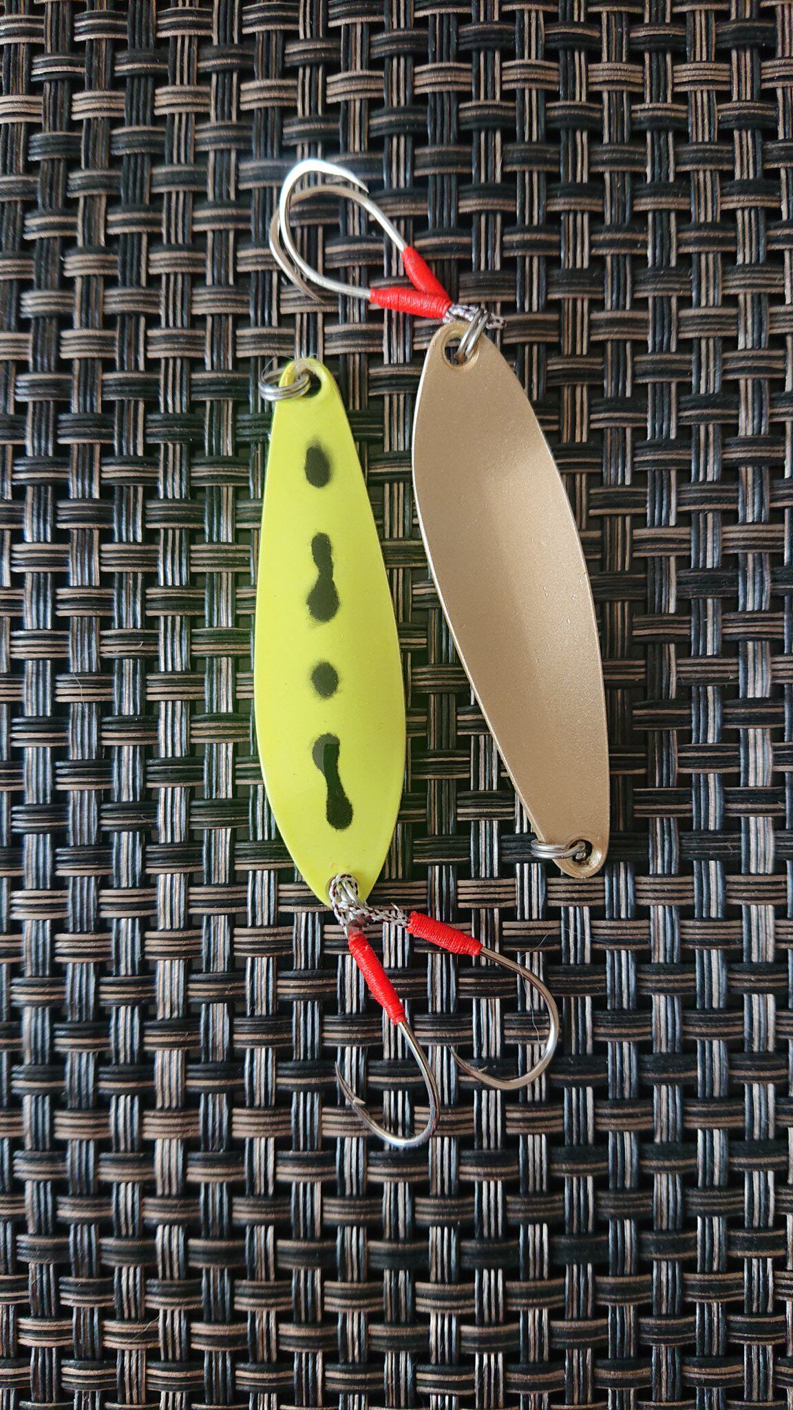 スプーン03・約8g・スイミングフック(チヌ針6号×2)付き(両面塗装・イエローチャートギルバー)